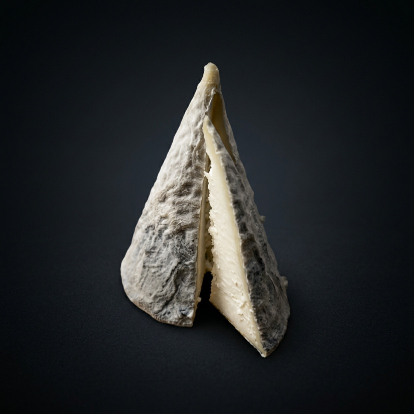 Le Ventoux est un fromage de chèvre fermier produit en Provence, reconnaissable à sa forme évoquant le sommet emblématique dont il porte le nom. Sa base, légèrement cendrée, contraste avec son sommet laissé blanc, symbolisant le géant provençal aussi appelé Mont chauve.